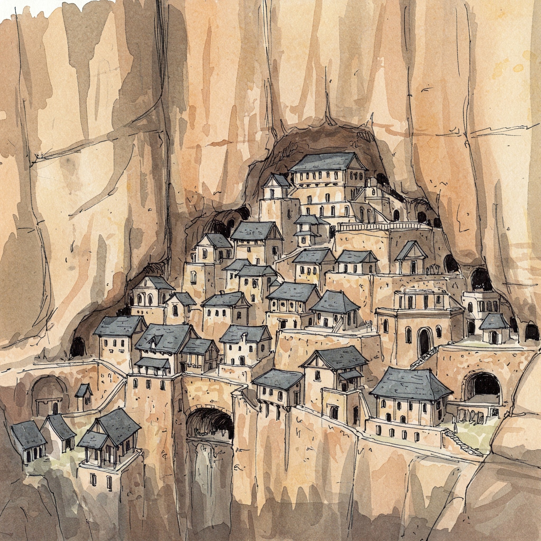The most notable settlement among the clans is Runehearth, a goliath town carved of stone and clinging to the desert side of the Guardian Mountains. This is the domain of Frederick Strongback, most revered of the Three. It is here that the clans call their moots and have made their stronghold for dire times.